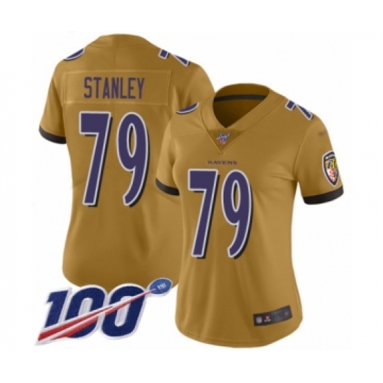 Women's Baltimore Ravens #79 Ronnie Stanley Limited Gold Inverted Legend 100th Season Football Jersey