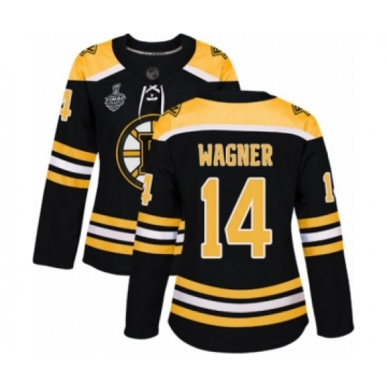 >Women's Boston Bruins #14 Chris Wagner Authentic Black Home 2019 Stanley Cup Final Bound Hockey Jersey