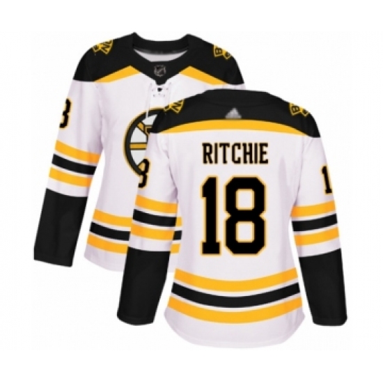 >Women's Boston Bruins #18 Brett Ritchie Authentic White Away Hockey Jersey