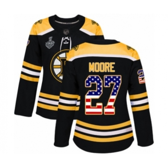Women's Boston Bruins #27 John Moore Authentic Black USA Flag Fashion 2019 Stanley Cup Final Bound Hockey Jersey