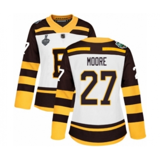 Women's Boston Bruins #27 John Moore Authentic White Winter Classic 2019 Stanley Cup Final Bound Hockey Jersey