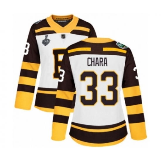 >Women's Boston Bruins #33 Zdeno Chara Authentic White Winter Classic 2019 Stanley Cup Final Bound Hockey Jersey