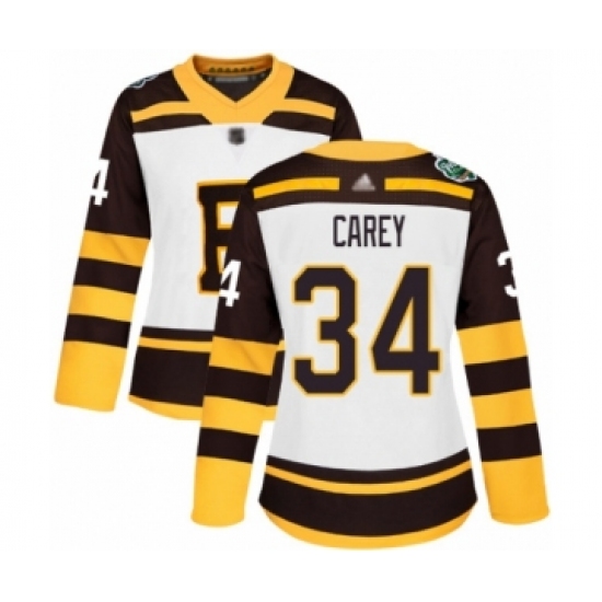 >Women's Boston Bruins #34 Paul Carey Authentic White 2019 Winter Classic Hockey Jersey