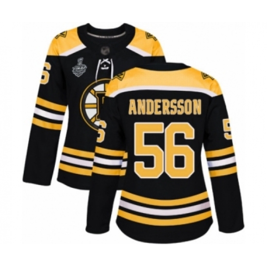 Women's Boston Bruins #56 Axel Andersson Authentic Black Home 2019 Stanley Cup Final Bound Hockey Jersey