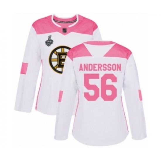 Women's Boston Bruins #56 Axel Andersson Authentic White Pink Fashion 2019 Stanley Cup Final Bound Hockey Jersey