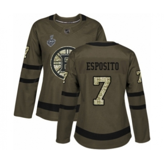Women's Boston Bruins #7 Phil Esposito Authentic Green Salute to Service 2019 Stanley Cup Final Bound Hockey Jersey
