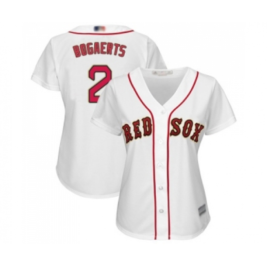 Women's Boston Red Sox #2 Xander Bogaerts Authentic White 2019 Gold Program Cool Base Baseball Jersey