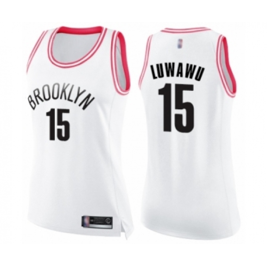 >Women's Brooklyn Nets #15 Timothe Luwawu Swingman White Pink Fashion Basketball Jersey