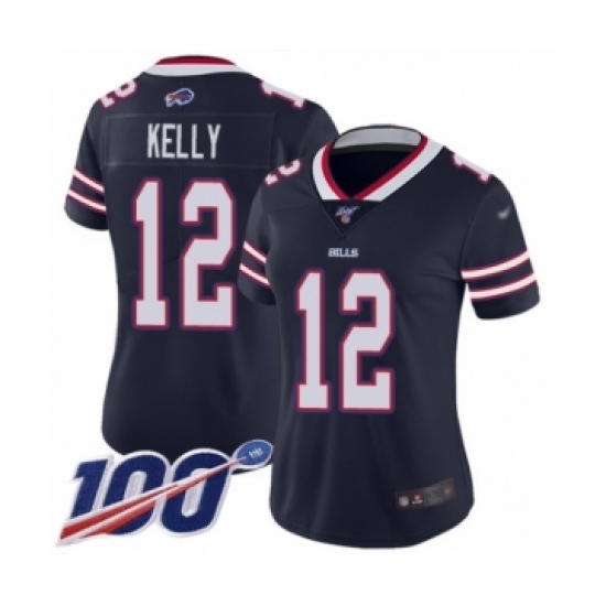 >Women's Buffalo Bills #12 Jim Kelly Limited Navy Blue Inverted Legend 100th Season Football Jersey