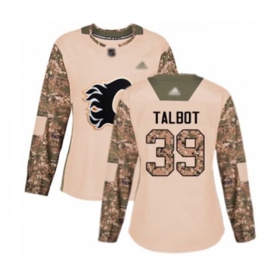 >Women's Calgary Flames #39 Cam Talbot Authentic Camo Veterans Day Practice Hockey Jersey