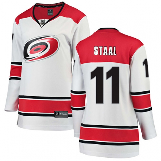 Home>NHL>Carolina Hurricanes>Jordan Staal>Women's Carolina Hurricanes #11 Jordan Staal Authentic White Away Fanatics Branded Breakaway NHL Jersey