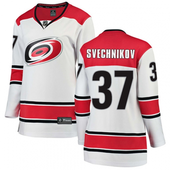 Women's Carolina Hurricanes #37 Andrei Svechnikov Authentic White Away Fanatics Branded Breakaway NHL Jersey