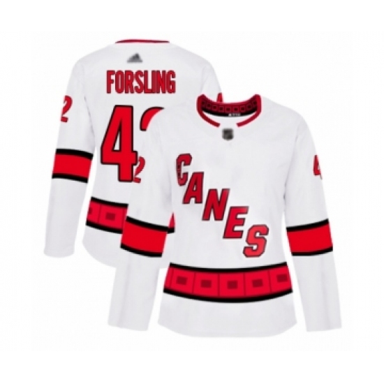 >Women's Carolina Hurricanes #42 Gustav Forsling Authentic White Away Hockey Jersey