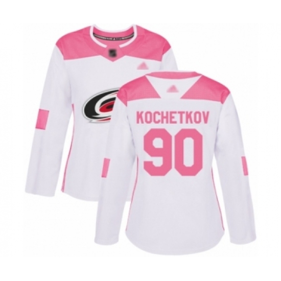 >Women's Carolina Hurricanes #90 Pyotr Kochetkov Authentic White Pink Fashion Hockey Jersey