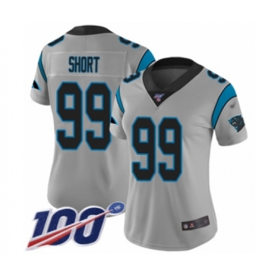 >Women's Carolina Panthers #99 Kawann Short Silver Inverted Legend Limited 100th Season Football Jersey