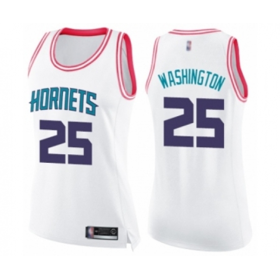 >Women's Charlotte Hornets #25 PJ Washington Swingman White Pink Fashion Basketball Jerse