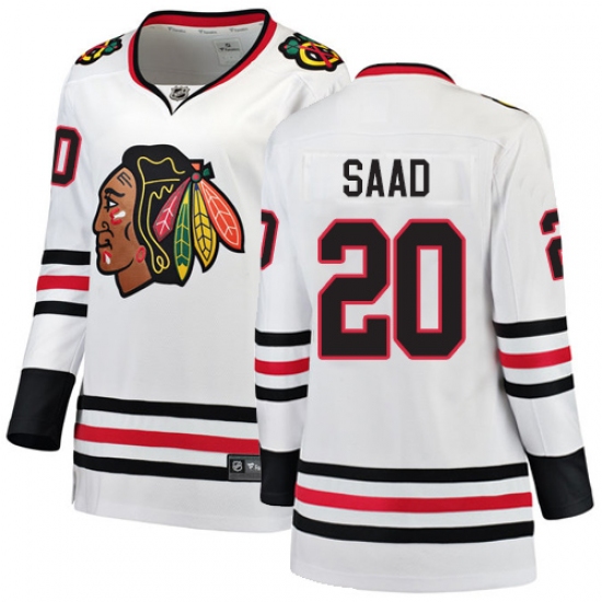 Home>NHL>Chicago Blackhawks>Brandon Saad>Women's Chicago Blackhawks #20 Brandon Saad Authentic White Away Fanatics Branded Breakaway NHL Jersey