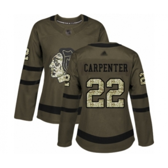 >Women's Chicago Blackhawks #22 Ryan Carpenter Authentic Green Salute to Service Hockey Jersey