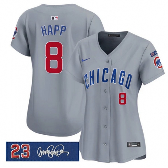 Women's Chicago Cubs #8 lan Happ Gray 'Ryne Sandberg Tribute' Vapor Limited V3 Stitched Baseball Jersey(Run Small)