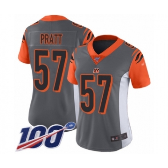 >Women's Cincinnati Bengals #57 Germaine Pratt Limited Silver Inverted Legend 100th Season Football Jersey