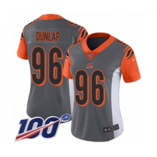 >Women's Cincinnati Bengals #96 Carlos Dunlap Limited Silver Inverted Legend 100th Season Football Jersey