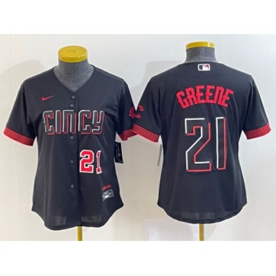 Women's Cincinnati Reds #21 Hunter Greene Black 2023 City Connect Cool Base Stitched Jersey1