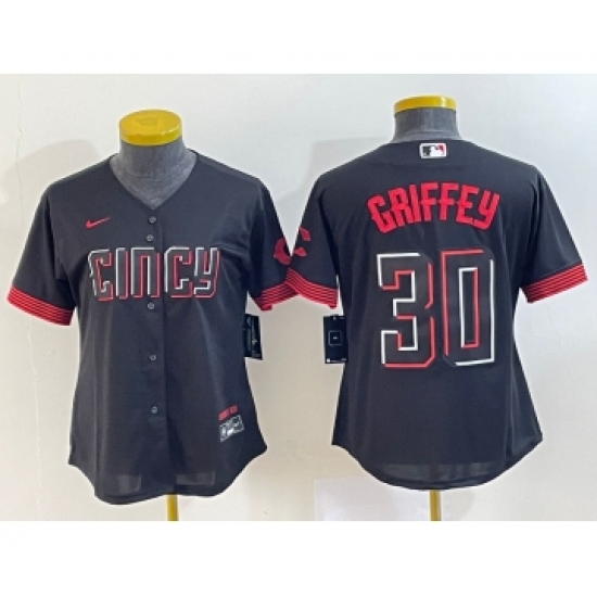 >Women's Cincinnati Reds #30 Ken Griffey Jr Black 2023 City Connect Cool Base Stitched Jersey1