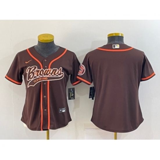 Women's Cleveland Browns Blank Brown With Patch Cool Base Stitched Baseball Jersey
