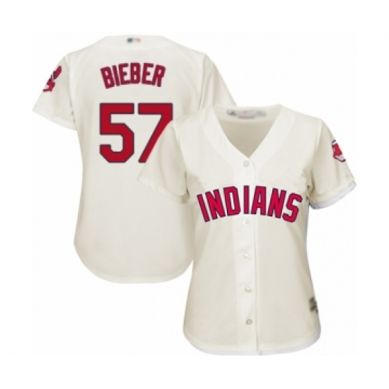 Women's Cleveland Indians #57 Shane Bieber Authentic White Home Cool Base Baseball Jersey