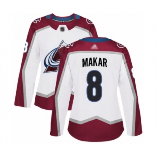 >Women's Colorado Avalanche #8 Cale Makar Authentic White Away Hockey Jersey