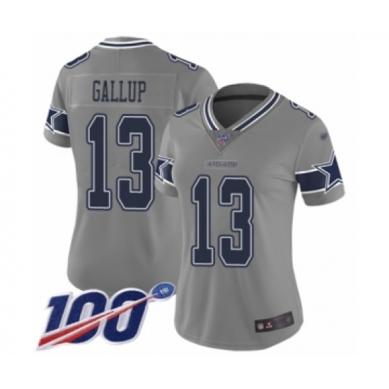 >Women's Dallas Cowboys #13 Michael Gallup Limited Gray Inverted Legend 100th Season Football Jersey