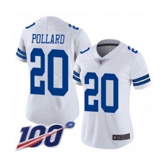 >Women's Dallas Cowboys #20 Tony Pollard White Vapor Untouchable Limited Player 100th Season Football Jersey
