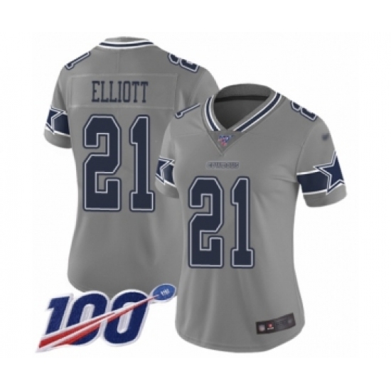 >Women's Dallas Cowboys #21 Ezekiel Elliott Limited Gray Inverted Legend 100th Season Football Jersey