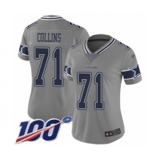 >Women's Dallas Cowboys #71 La'el Collins Limited Gray Inverted Legend 100th Season Football Jersey