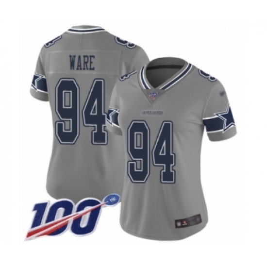 Women's Dallas Cowboys #94 DeMarcus Ware Limited Gray Inverted Legend 100th Season Football Jersey