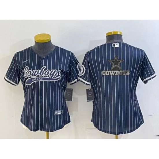 Women's Dallas Cowboys Navy Team Big Logo With Patch Cool Base Stitched Baseball Jersey