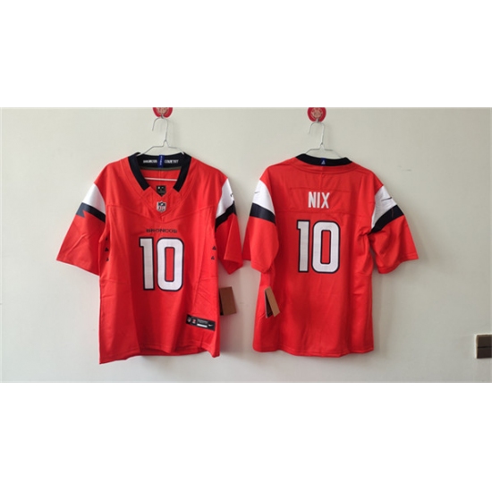 >Women's Denver Broncos #10 Bo Nix Orange 2024 F.U.S.E. Alternate Stitched Jersey(Run Small)