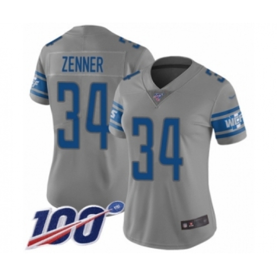>Women's Detroit Lions #34 Zach Zenner Limited Gray Inverted Legend 100th Season Football Jersey