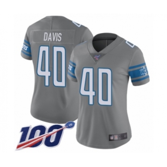 >Women's Detroit Lions #40 Jarrad Davis Limited Steel Rush Vapor Untouchable 100th Season Football Jersey