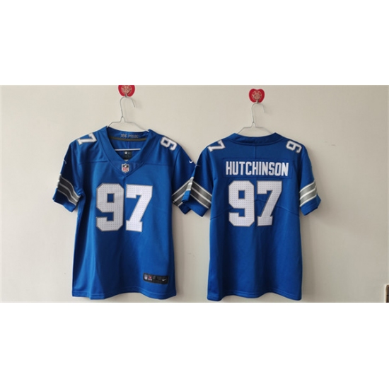 >Women's Detroit Lions #97 Aidan Hutchinson Blue Vapor Football Stitched Jersey(Run Smaller)