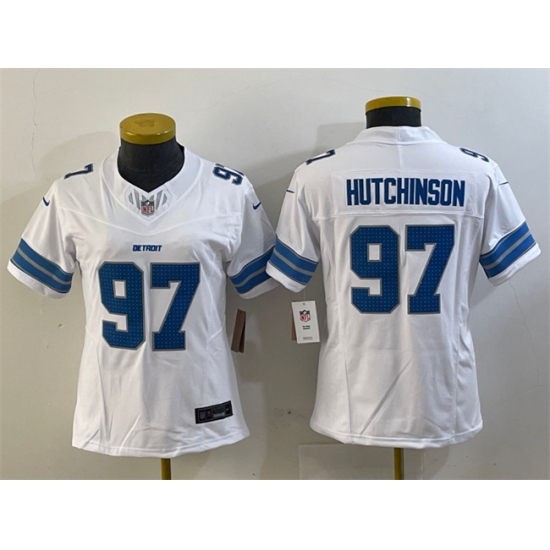 Women's Detroit Lions #97 Aidan Hutchinson White Vapor Football Stitched Jersey(Run Smaller)