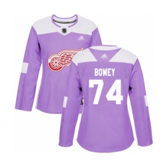 Women's Detroit Red Wings #74 Madison Bowey Authentic Purple Fights Cancer Practice Hockey Jersey
