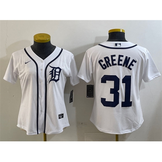 Women's Detroit Tigers #31 Riley Greene White Cool Base Stitched Baseball Jersey(Run Small)