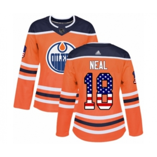 Women's Edmonton Oilers #18 James Neal Authentic Orange USA Flag Fashion Hockey Jersey