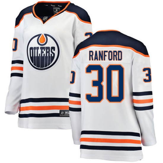 Home>NHL>Edmonton Oilers>Bill Ranford>Women's Edmonton Oilers #30 Bill Ranford Authentic White Away Fanatics Branded Breakaway NHL Jersey