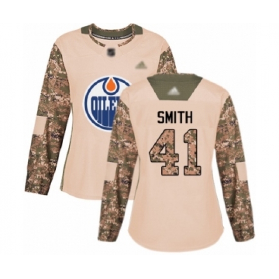 Women's Edmonton Oilers #41 Mike Smith Authentic Camo Veterans Day Practice Hockey Jersey