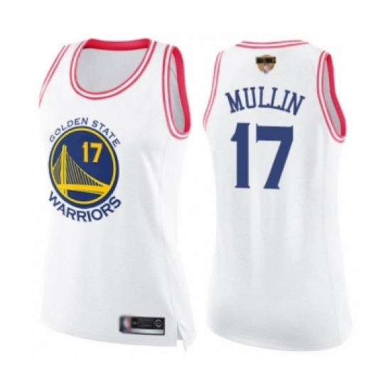 >Women's Golden State Warriors #17 Chris Mullin Swingman White Pink Fashion 2019 Basketball Finals Bound Basketball Jersey