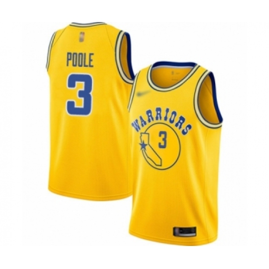 Men's Golden State Warriors #3 Jordan Poole Authentic Gold Hardwood Classics Basketball Jersey - The City Classic Edition