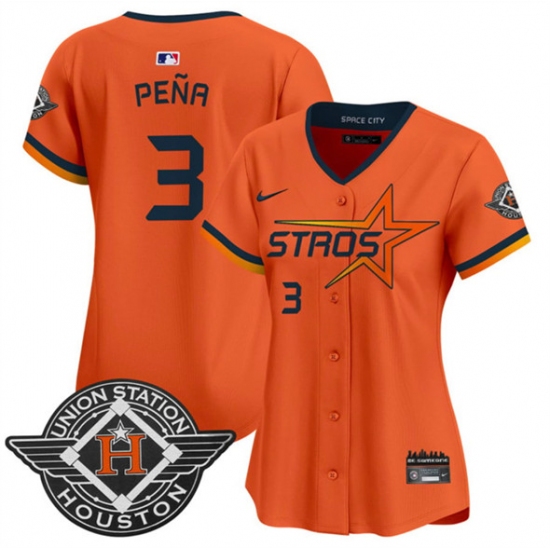 >Women's Houston Astros #3 Jeremy Pena Orange 2025 City Connect Limited Stitched Baseball Jersey(Run Small)