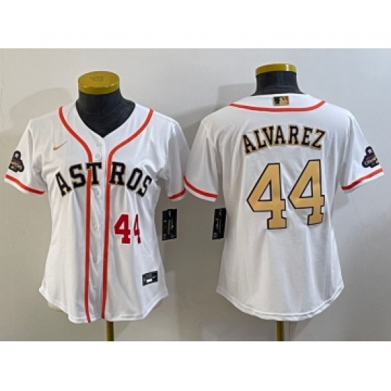 Women's Houston Astros #44 Yordan Alvarez Number 2023 White Gold World Serise Champions Cool Base Stitched Jerseys